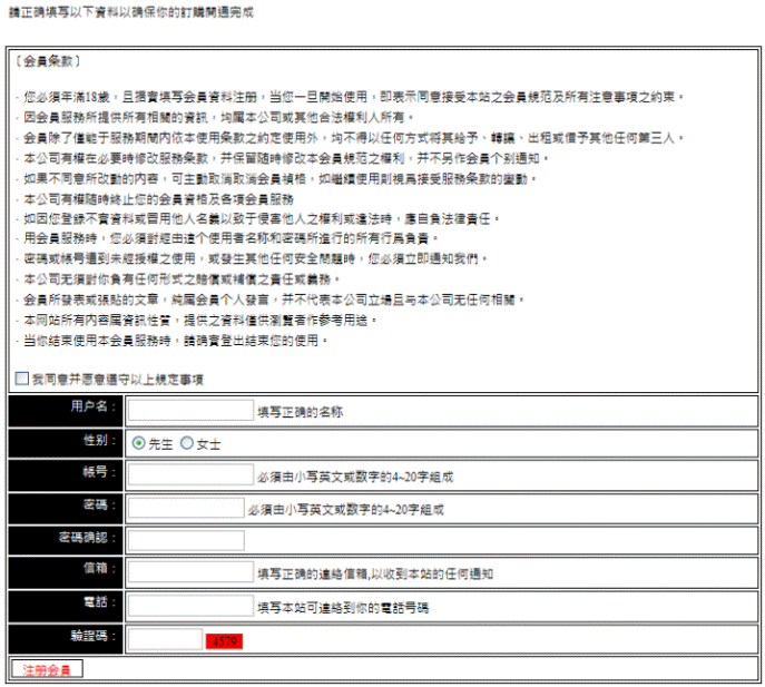 1.先加入注册为本站会员,点选选单上方"注册会员"