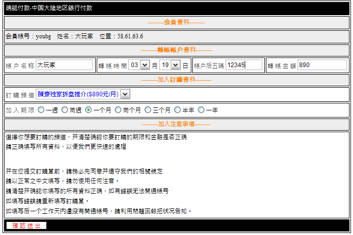 3.到网页上方会员登入区输入你申请的帐号密码登入
